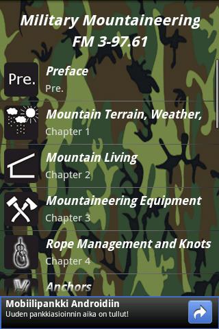 *** This application is completely based on the United States MILITARY MOUNTAINEERING Field Manual FM 3-97.61. ***