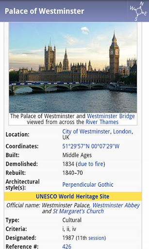 With over 350 000 articles (rated 0-5 stars), it’s like having a universal tour guide always in your pocket. Just select any of them to open it on Wikipedia with history, pictures, figures, photos and images. The world heritage will be yours!