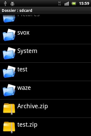 Navigate in the archive and select a file to see its content. Choose Extract to copy files on SD card.